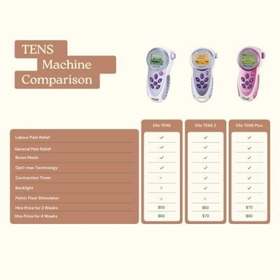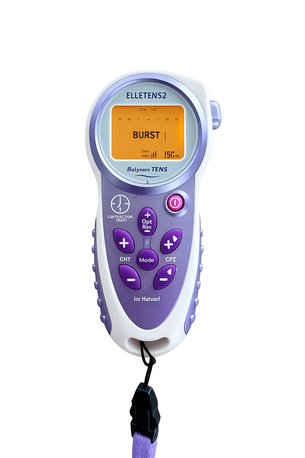Elle TENS 2 units typically include electrode pads, leadwires, batteries, a neck cord, and instructions — everything you need for home use and labour.Â